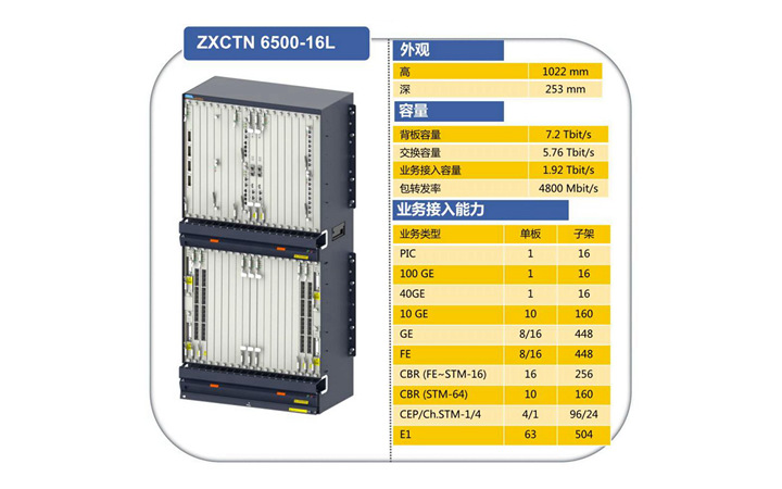ZXCTN 6500-16L采用開放式的技術平臺,兼容傳統的傳輸和數據網絡。
